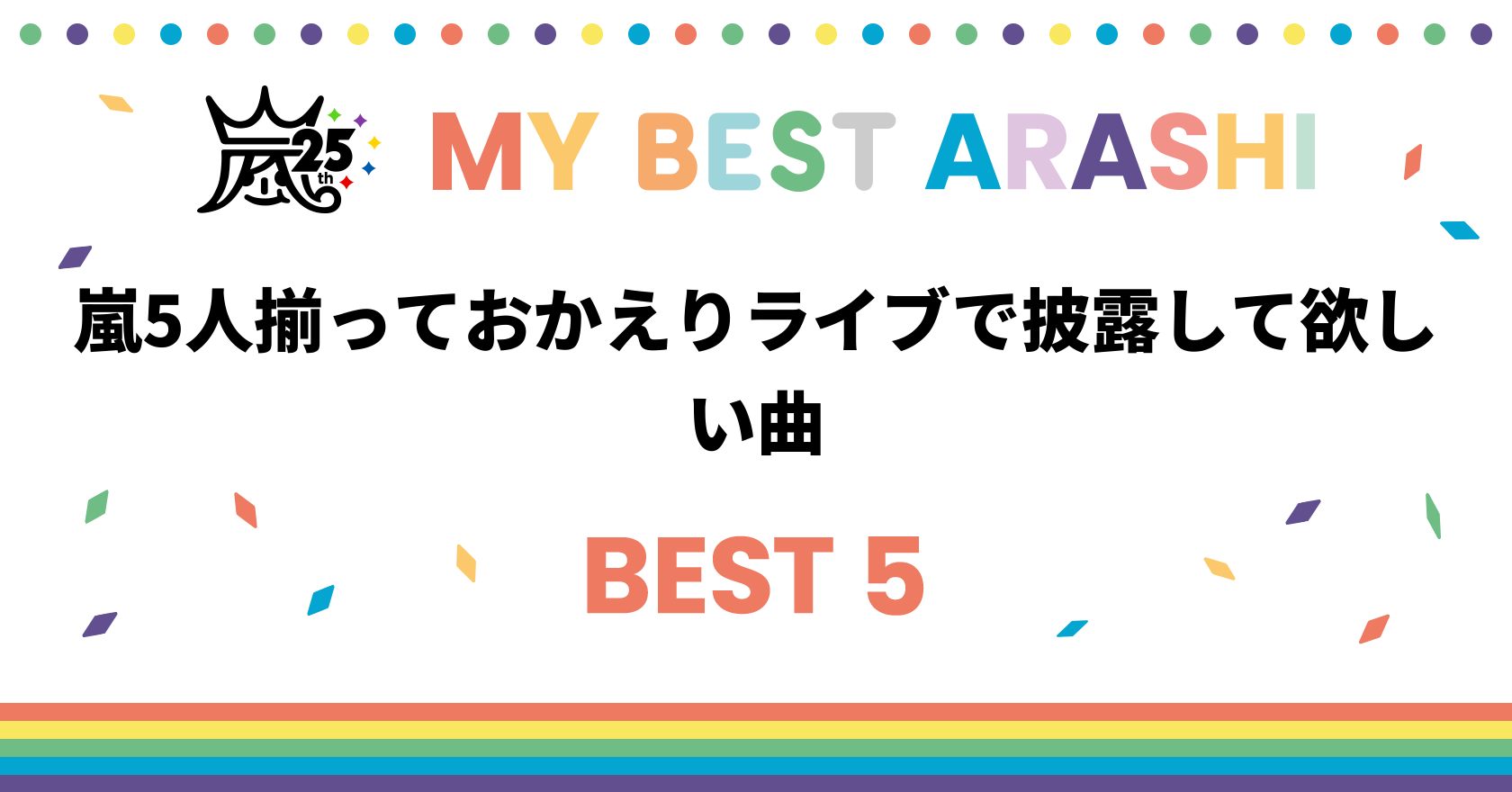 嵐5人揃っておかえりライブで披露して欲しい曲